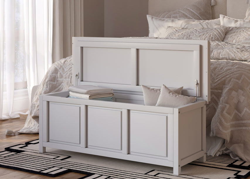 We bought this bench for our master bathroom, but it was so beautiful, our teenage daughter convinced us to put it in her room. She stores her backpack, miscellaneous school supplies, extra slippers, and such items inside; sits on it during the day to read; and uses the top to store extra throw pillows and blankets from her bed. We're happy because it clears up the clutter in her room and she's happy to have a beautiful nook of her very own!